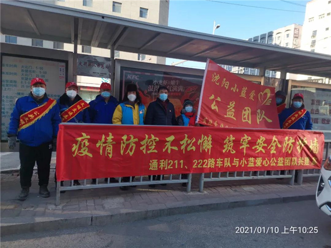1月10日上午10時,沈陽小藍(lán)爰心公益團(tuán)隊隊員來到通利公司211、222路大北門車隊,冒著嚴(yán)寒送來了抗疫物資300個口罩和兩箱消毒液,并和車隊共同開展了“疫情防控不松懈筑牢安全防護(hù)墻”主題宣傳活動,使廣大駕駛員感受到在抗擊疫情斗爭中,社會爰心團(tuán)隊對公交車隊的支持與關(guān)愛。