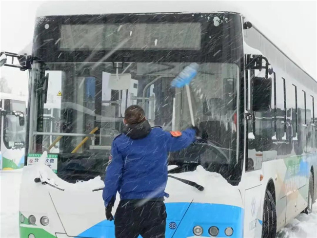 凌晨4點(diǎn)多,第一班車的駕駛員就已經(jīng)提前到崗,清掃積雪,預(yù)熱車輛...