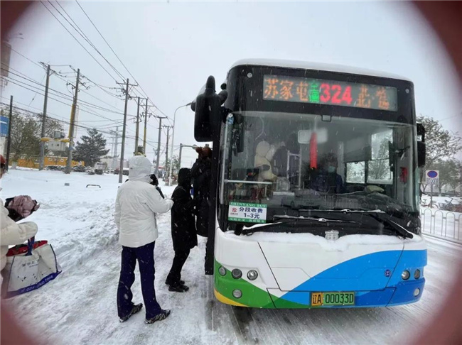 迎著風(fēng)雪,首班車順利發(fā)車