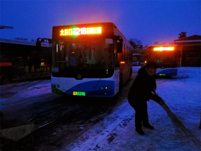 雪后的次日清晨,寒冷的天氣加上冰雪路面,給交通出行帶來了極大不便。為了保證各條線路正常運(yùn)營(yíng)秩序,車隊(duì)駕駛員提前到崗預(yù)熱車輛,確保首車發(fā)車準(zhǔn)時(shí)準(zhǔn)點(diǎn);車隊(duì)其他人員及時(shí)清理站臺(tái)積雪,保證車輛進(jìn)出站的安全,防止乘客在上下車時(shí)滑倒摔傷;同時(shí),公司GPS智能調(diào)度中心也加強(qiáng)了車輛運(yùn)行狀況的監(jiān)控力度,在保證運(yùn)營(yíng)安全有序的情況下,做到科學(xué)調(diào)度,全力以赴保障市民安全出行。