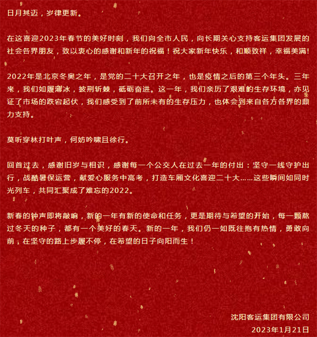沈陽(yáng)客運(yùn)集團(tuán)新春賀詞