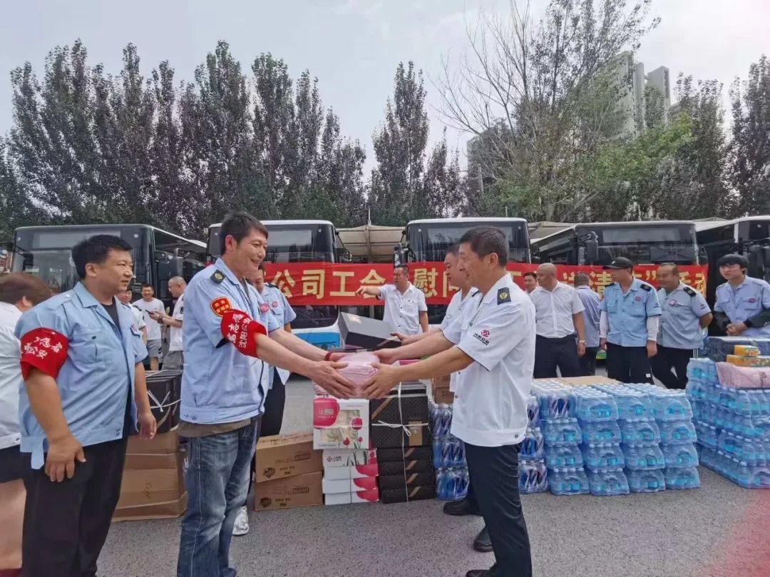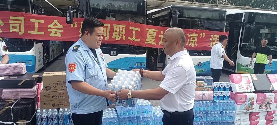 黃河公司心系職工,7月23日下午,公司負(fù)責(zé)人來到西江街公交樞紐站開展“慰問職工 夏送清涼”活動,將“清涼”送到運(yùn)營一線,送到職工的心坎上。
